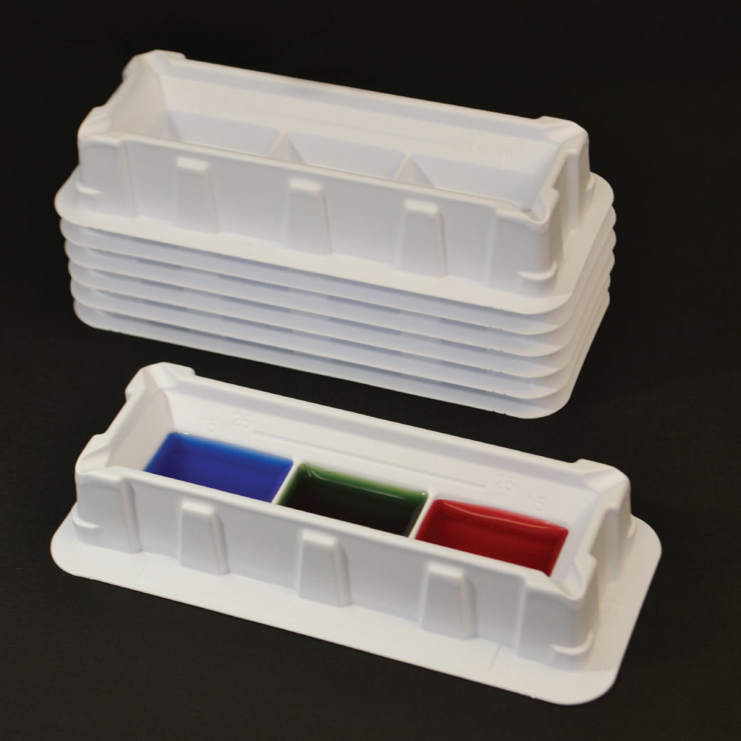Thermoformed with Virgin Resin, Certified RNase/DNase Free. Non-Pyrogenic, Animal Free, Human DNA Free. Engineered to accommodate single and multichannel pipettors. Stacking lugs to ease separation and prevent crushing. Pour off spouts in each corner. Customization available for the reservoir packaging and heat sealing.
